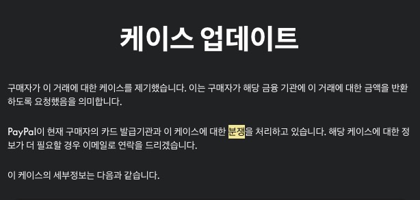 구매자의 카드사는 지불결정을 내렸다고 연락이 왔고, 페이팔은 이 분쟁에 대해서 카드사와 분쟁처리를 한다며 또다시 수수료를 떼갔다.