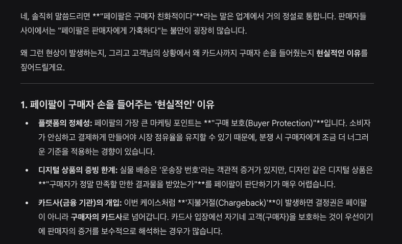 제미나이는 페이팔의 결제시스템에서 이렇게 의견을 내놓았다.
